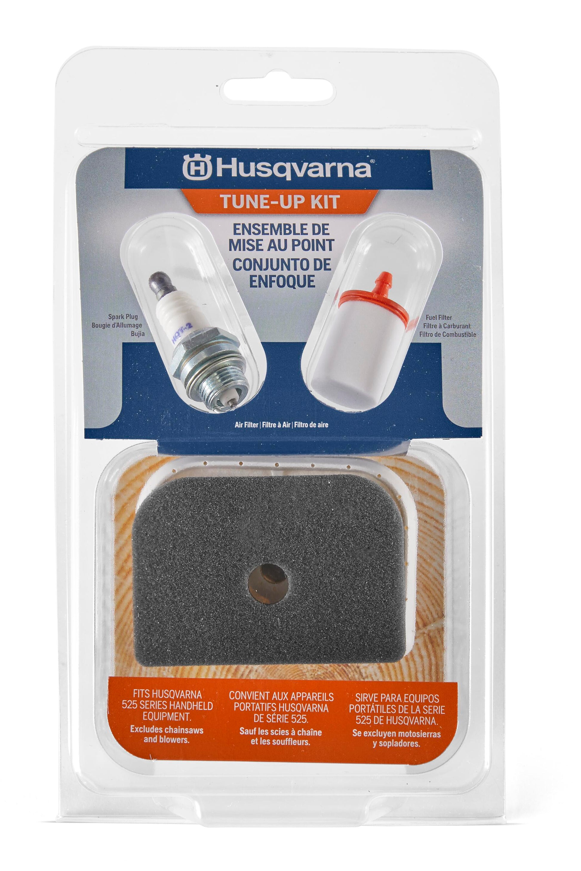 Keep your Husqvarna 525 trimmer, edger, hedge trimmer, or pole saw running like new with an official tune-up kit. This convenient, all-in-one kit includes a fuel filter, air filter, pre-filter, and spark plug. Enjoy fast and efficient maintenance of your equipment. Compatible with Husqvarna 525 series handheld models (Excluding Mark II Trimmers)