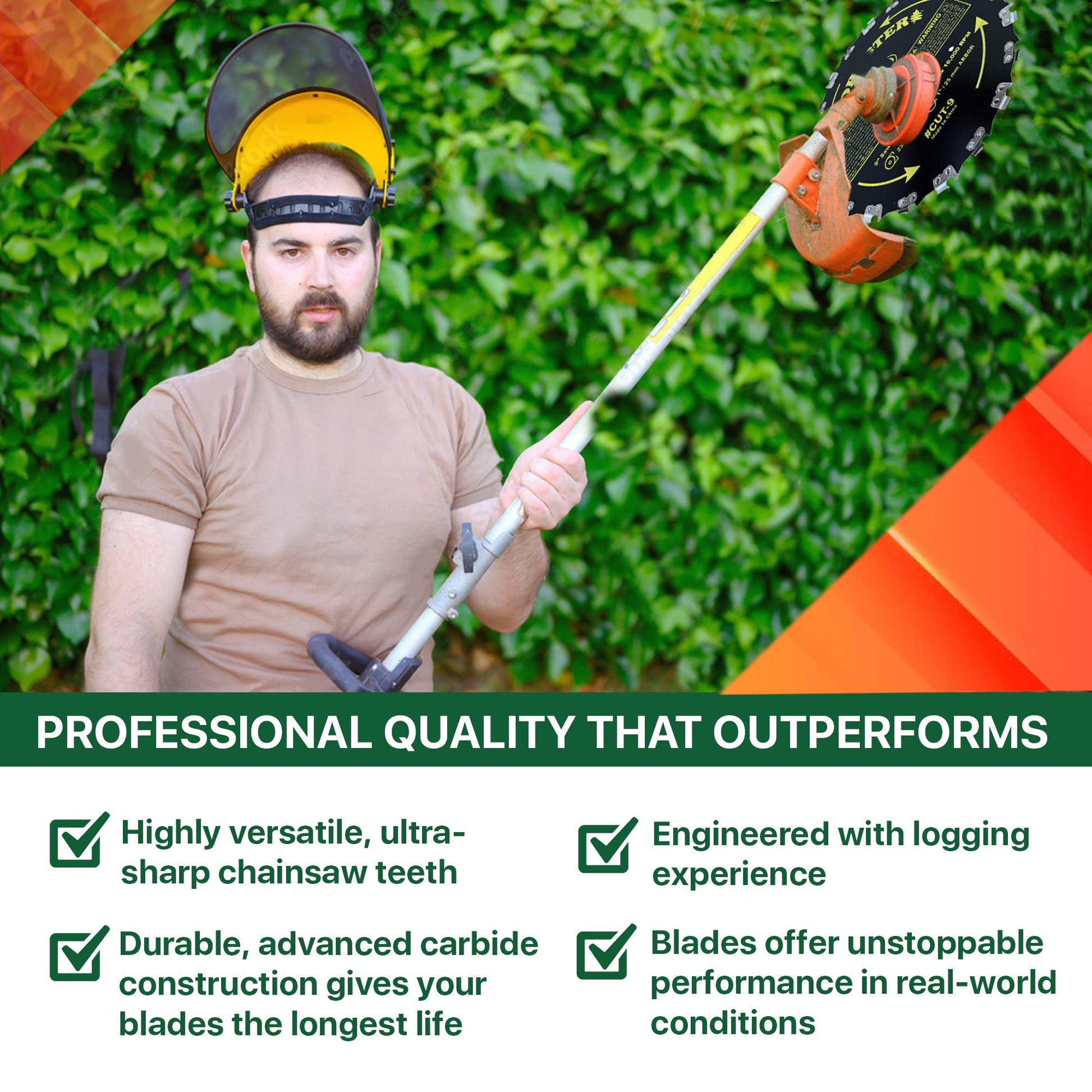 - THE BEST QUALITY: These ultra sharp chainsaw teeth can power through anything you need up to small trees and has a heavy-duty carbide construction that keeps going where others quit. These blades are a perfect fit for most straight shaft trimmers.