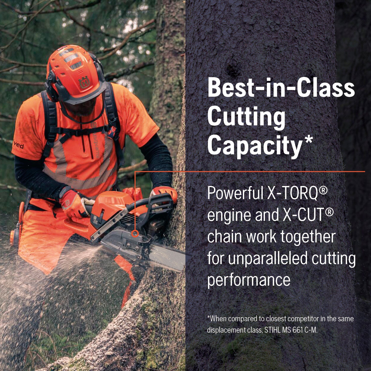 Experience the power of our new 90cc petrol chainsaw range! Husqvarna 592 XP® is developed for professional forestry and tree care workers who demand the best in heavy-duty performance, reliable operation, and well-balanced maneuverability. Featuring AutoTune 3.0, this chainsaw starts easily and runs optimally in all conditions. The powerful X-Torq engine combined with the X-Cut C85/C83 chains delivers best-in-class cutting capacity and power-to-weight. Equipped with X-Tough™ or X-Tough™ Light bar, available from 20” to 36”.
