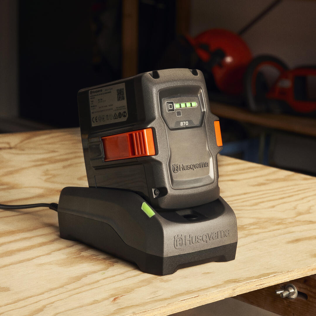 Keep your Husqvarna cordless power tools charged with the Husqvarna QC4080 Lithium Ion Battery Charger. The Husqvarna QC4080 battery charger is a compact single bay desktop charger for occasional use that provides safe and efficient charging of Husqvarna batteries. This charger for power tools is an 80W charging unit for part-time use. Ideal for use with Husqvarna BLi20 and BLi30 batteries, this 40V battery charger is compatible with Husqvarna 100, 200, 200X and 300-Series battery-powered equipment, including chainsaws, trimmers and leaf blowers. You can conveniently check the battery charging status with the easy-to-read battery indicator light. Store Husqvarna battery chargers in a dry, clean space away from sunlight. In addition to this 40V battery charger, Husqvarna offers a variety of battery accessories like the Husqvarna backpack battery harness, hip pad and battery bag.