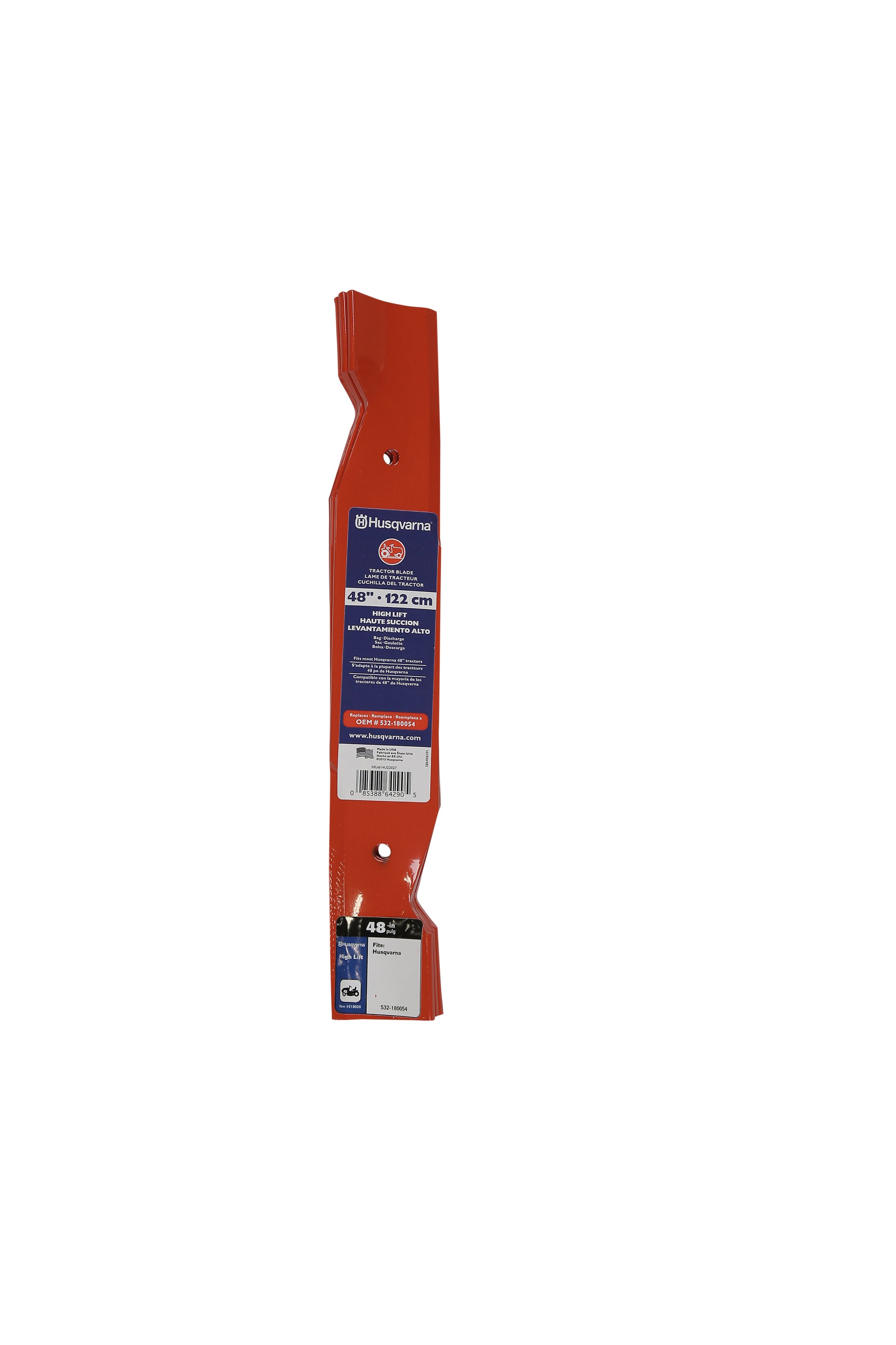 For the finest looking lawn, you need to have a sharp mower blade, and the Husqvarna 48-Inch High-Lift Bagging Lawn Mower Blade keeps your ride on lawn mower working at its optimum level. Husqvarna’s premium bagging blades are forged with hardened steel and designed to maximize cut quality while boosting overall performance. Recommended for most riding mowers, this genuine 48-inch bagging blade fits Husqvarna models: YTH22V46, YTH24V48, TS 146X/XK/XD and TS148X/XK. This star-mount blade is easy to install for a mower that works like new. This original factory part ensures the ideal blade height and angling when used on Husqvarna mowers for long-lasting operation. Husqvarna mower blades are engineered to reduce noise levels during operation and designed to deliver a consistent cut. The result is less time spent on adjustments when replacing parts and superior performance across the mower's lifetime. These lawn tractor blades deliver 4-in-1 performance with a high-lift, powerful suction and a clean discharge for bagging or mulching. The unique bagging blade design creates more airflow under the deck to send clippings to the bag. Husqvarna blades are precision manufactured with ultra-tough, hardened materials to run smoother, stay sharper and deliver a quieter cutting experience.