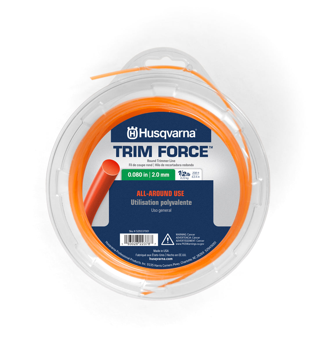 Put the finishing touches on any lawn with Husqvarna's Trim Force trimmer line. Suitable for all-around use on a wide range of applications, this round-shaped line features good durability, cutting performance and energy efficiency. This item has a .080-in gauge is 208 ft long and comes as a 0.5 lb spool.