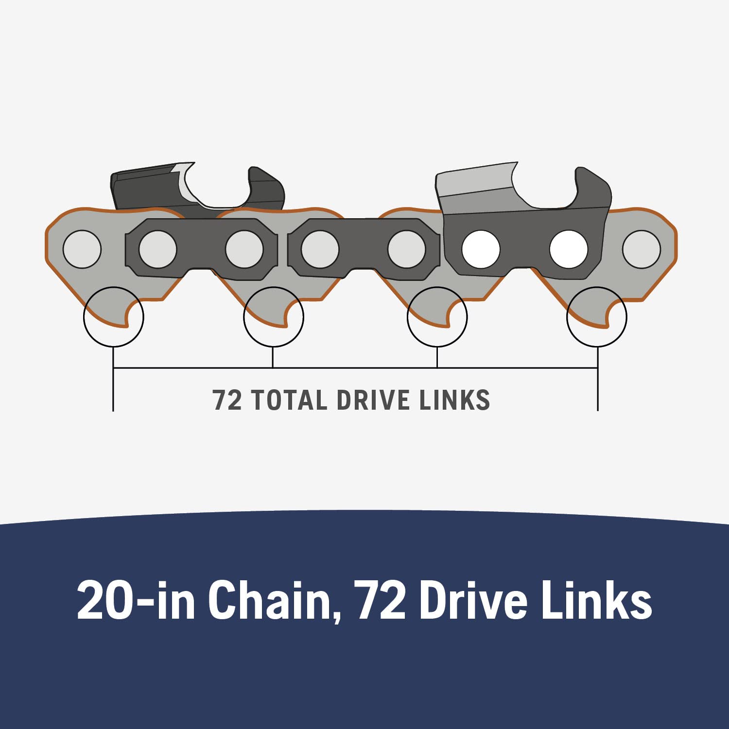 - Semi-Chisel Chain: Husqvarna chainsaw chains 20 inch replacements use a semi-chisel chain that is easy to file and stays sharper longer, with 72 drive links, a 3/8" pitch and a .050" gauge