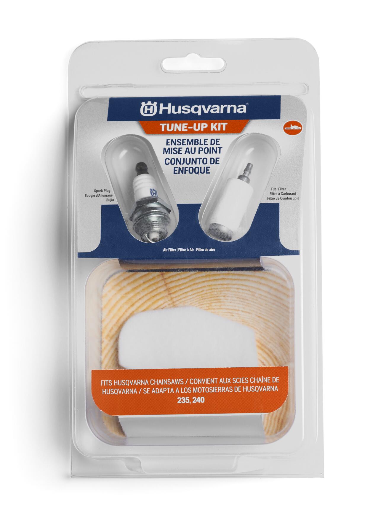 Keep your Husqvarna chainsaw running like new with an official Husqvarna tune up kit. These chainsaw accessories are compatible with Husqvarna 235 and 240 chainsaw models. The Husqvarna Chainsaw Maintenance Kit has everything you need to keep your chainsaw running at peak performance. This convenient, all-in-one kit includes one Husqvarna fuel filter, one Husqvarna chainsaw air filter and one Husqvarna spark plug. Designed to ensure peak performance from Husqvarna engines, Husqvarna chainsaw parts are made of premium-quality materials to keep your lawn equipment running at peak performance. Enjoy fast and efficient maintenance of your equipment with genuine Husqvarna replacement parts that are easy to install and maintain.