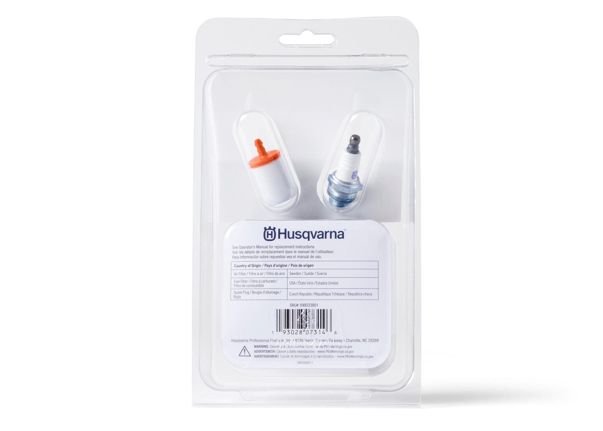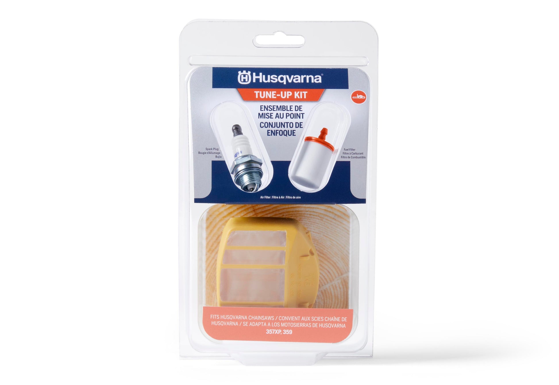 Keep your Husqvarna chainsaw running like new with an official Husqvarna tune up kit. These chainsaw accessories are compatible with Husqvarna 357XP and 359 chainsaw models. The Husqvarna Chainsaw Maintenance Kit has everything you need to keep your chainsaw running at peak performance. This convenient, all-in-one kit includes one Husqvarna fuel filter, one Husqvarna chainsaw air filter and one Husqvarna spark plug. Designed to ensure peak performance from Husqvarna engines, Husqvarna chainsaw parts are made of premium-quality materials to keep your lawn equipment running at peak performance. Enjoy fast and efficient maintenance of your equipment with genuine Husqvarna replacement parts that are easy to install and maintain.