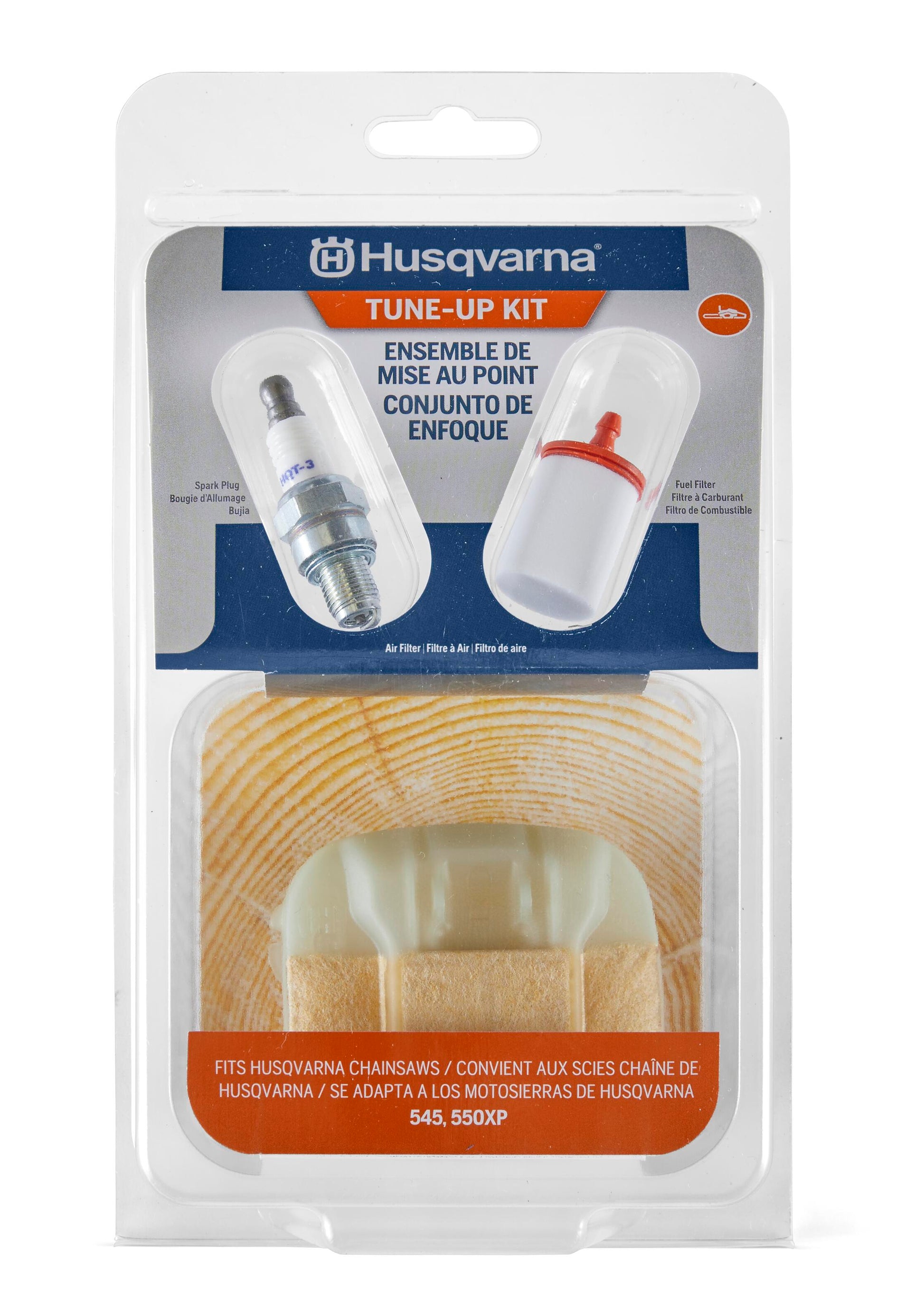 Keep your Husqvarna chainsaw running like new with an official Husqvarna tune up kit. These chainsaw accessories are compatible with Husqvarna 545 and 550XP chainsaw models. The Husqvarna Chainsaw Maintenance Kit has everything you need to keep your chainsaw running at peak performance. This convenient, all-in-one kit includes one Husqvarna fuel filter, one Husqvarna chainsaw air filter and one Husqvarna spark plug. Designed to ensure peak performance from Husqvarna engines, Husqvarna chainsaw parts are made of premium-quality materials to keep your lawn equipment running at peak performance. Enjoy fast and efficient maintenance of your equipment with genuine Husqvarna replacement parts that are easy to install and maintain.