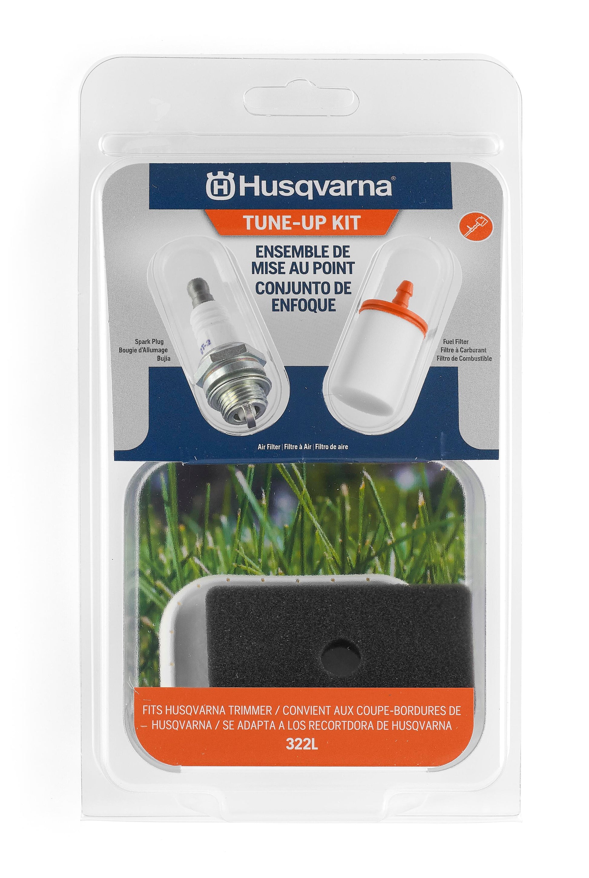 Keep your Husqvarna string trimmer running like new with an official Husqvarna tune up kit. This string trimmer accessory is compatible with Husqvarna 322L trimmer model. The Husqvarna Trimmer Maintenance Kit has everything you need to keep your weed whacker running at peak performance. This convenient, all-in-one kit includes one Husqvarna fuel filter, one Husqvarna trimmer air filter and one Husqvarna spark plug. Designed to ensure peak performance from Husqvarna engines, Husqvarna trimmer parts are made of premium-quality materials to keep your lawn equipment running at peak performance. Enjoy fast and efficient maintenance of your equipment with genuine Husqvarna replacement parts that are easy to install and maintain.