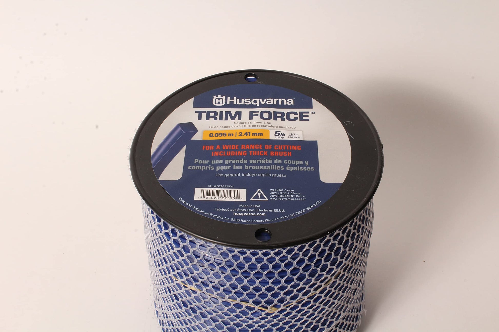 The Husqvarna 529337504 is a TrimForce Square Trimmer Line, featuring a .095-inch diameter and 1,427 feet of square-shaped line. Designed for professional and heavy-duty use, it offers enhanced cutting performance, especially for tough vegetation. The square shape ensures more precise cutting edges compared to traditional round lines, making it suitable for maintaining clean, sharp lawn edges. This is an authentic Husqvarna product and fits a variety of trimmer models. Itβs an ideal choice for users looking for durable and efficient trimming solutions.