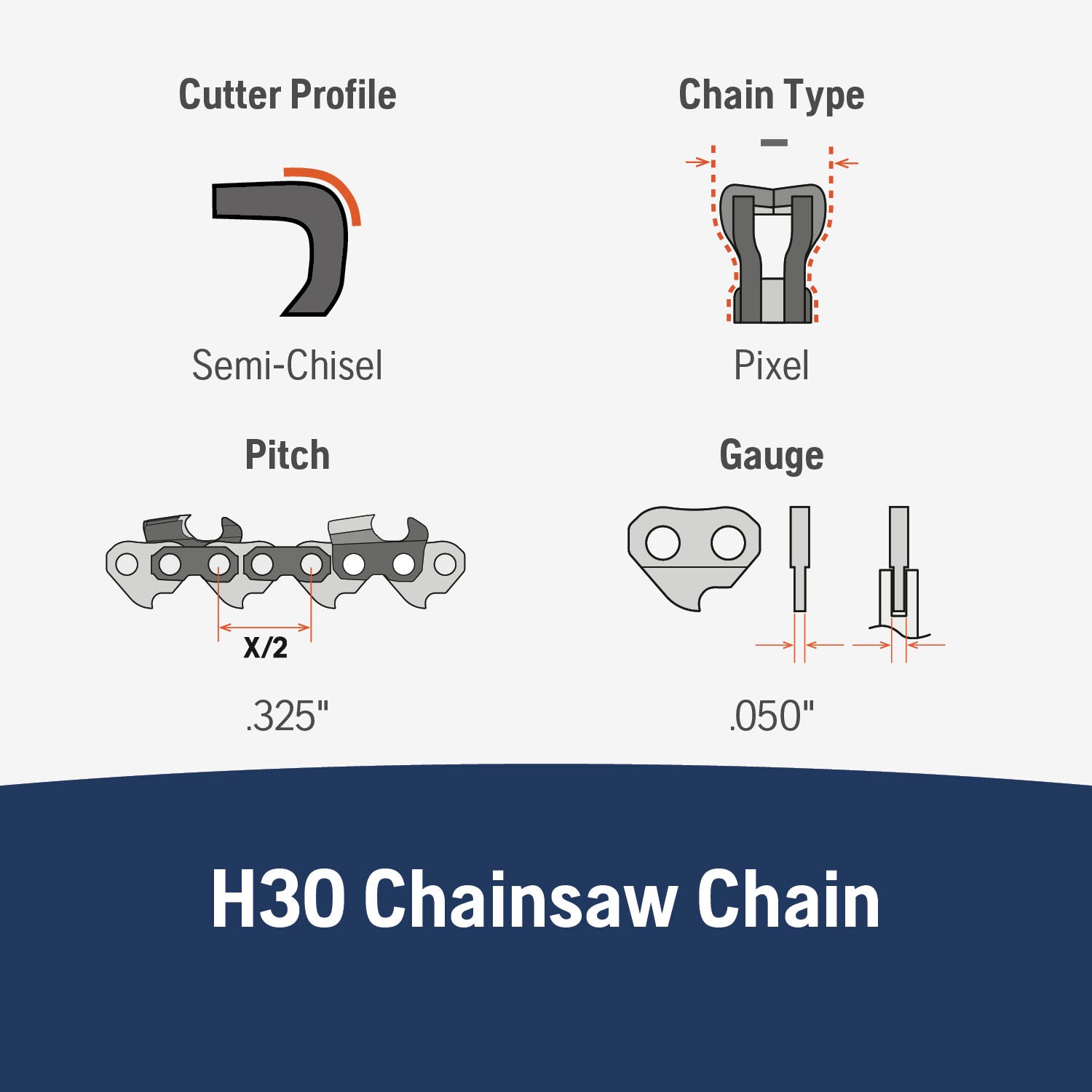 Husqvarna H30 Narrow Kerf 18 Inch Chainsaw Chain Replacement, .325" Pitch, .050" Gauge, and 72 Drive Links