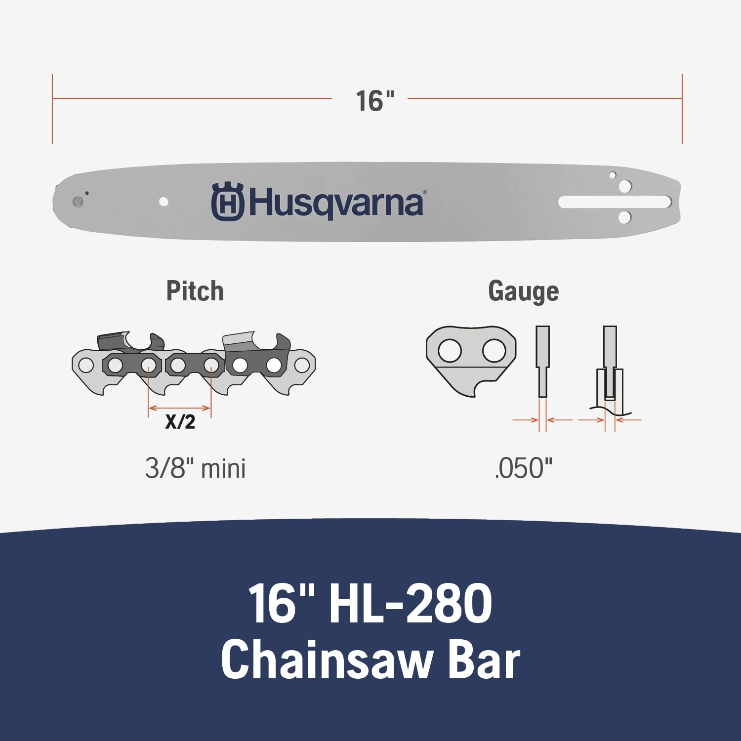 Husqvarna HL280 16 Inch Chainsaw Bar with a 3/8" mini-pitch, .050" gauge and 56 drive links