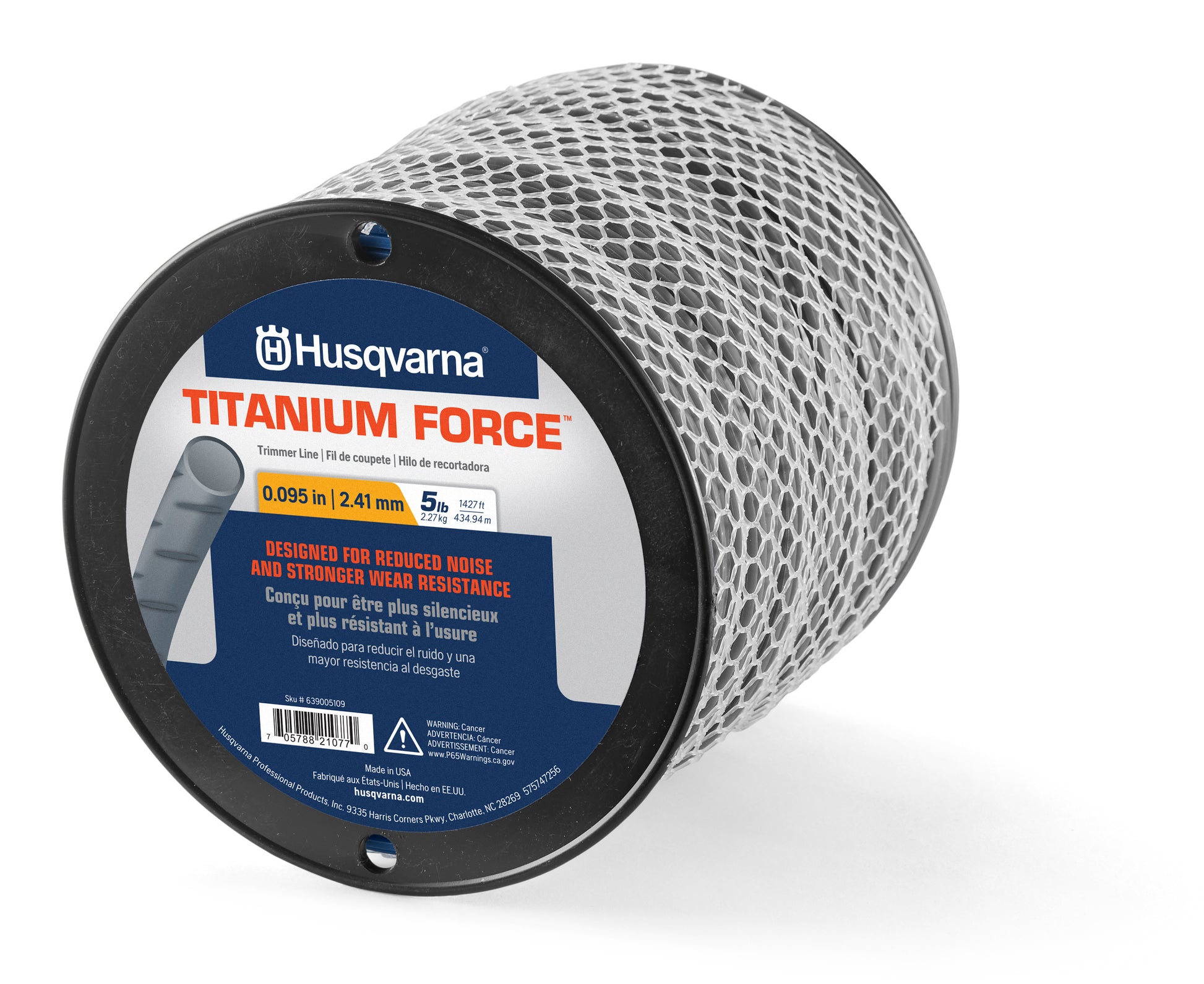 Take your trimming to the next level with Husqvarna Titanium Force String Trimmer Line. Made with commercial-grade copolymer trimmer line in a silver color, the Titanium Force design is based on cutting-edge technology that gives longer life, better performance, faster acceleration and level flight characteristics. This technology allows for reduced fuel consumption and low noise level for a better working environment. Husqvarna Titanium Force weed eater string is compatible with all standard string trimmer heads and is suitable for all-around use on a wide range of applications. This weed eater line provides great resistance to abrasion for long life and reduced breakage and features an undulated surface for quiet operation and precise cutting. Co-polymer-engineered resins improve the durability of this weed wacker string while maintaining flexibility. Husqvarna trimmer line works with both gas and cordless trimmers requiring a 0.095-inch trimmer line.