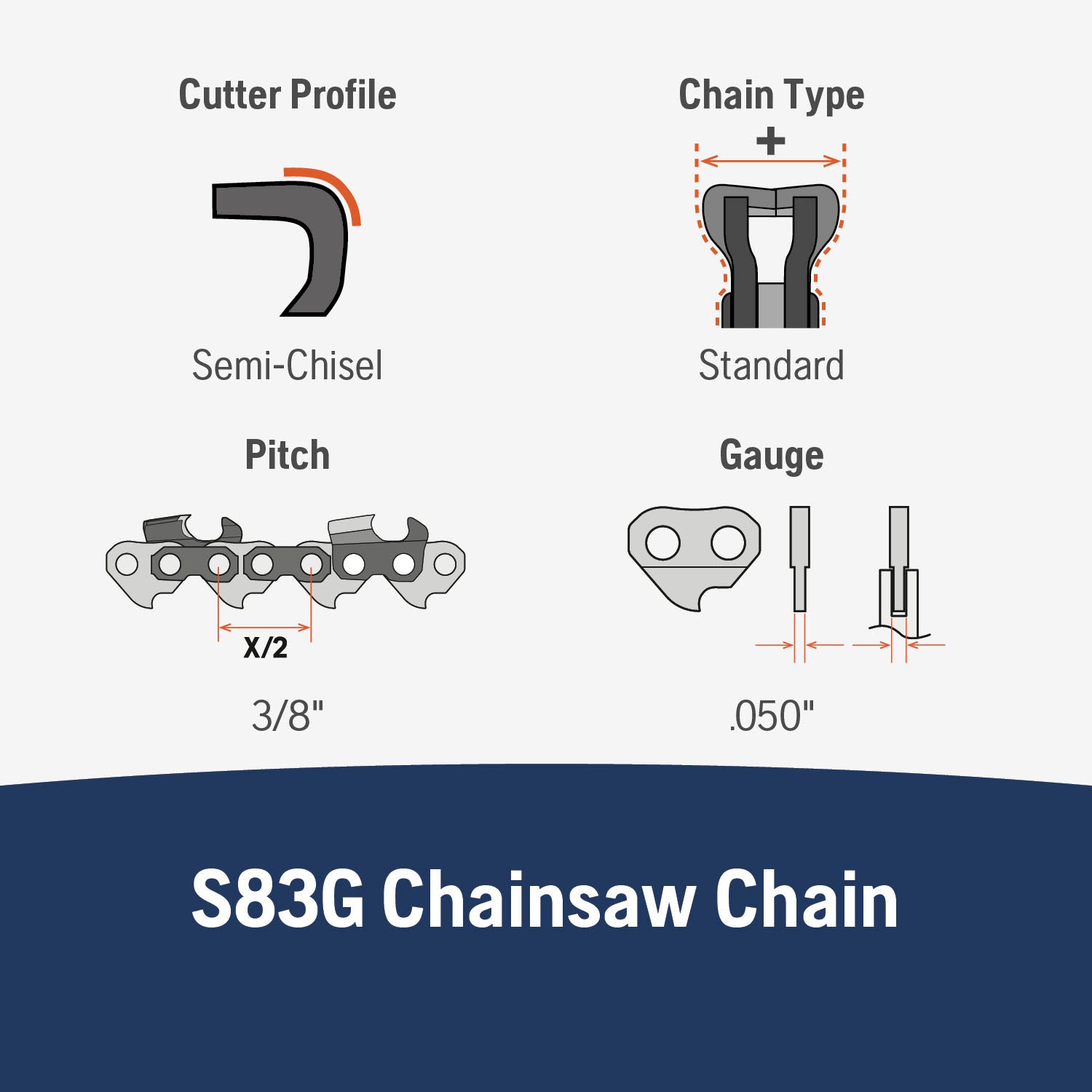 Husqvarna X-Cut S83G 20 Inch Chainsaw Chain Replacement, .3/8" Pitch, .050" Gauge, and 72 Drive Links