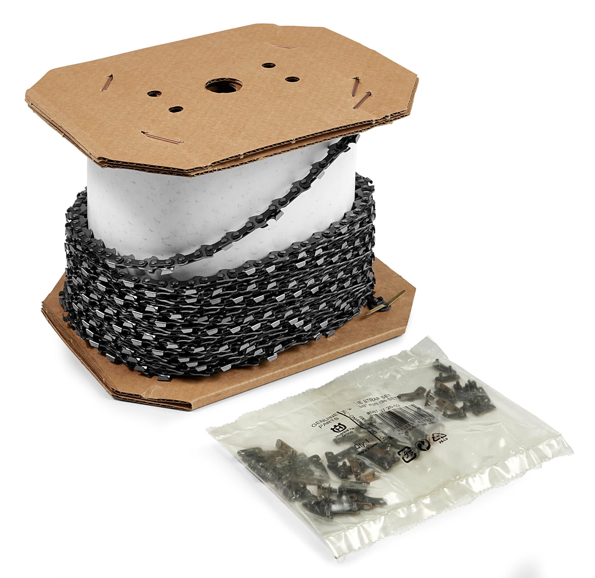 Give your chainsaw excellent precision and performance in narrow spaces with the Husqvarna X-Cut 100' feet Chainsaw Chain. This chainsaw chain is compatible with the Husqvarna 120 MARK II, 130, 135 MARK II, 240, 439, T525, T435, T540XP models. Due to its smooth operation, lasting sharpness and low kickback, these Husqvarna chainsaw chains generate high cutting efficiency while improving maneuverability and reducing body strain. These reliable chainsaw accessories are designed with a balanced combination of materials and manufacturing processes to generate high durability. In addition, the replacement chainsaw chain is pre-stretched to work longer without needing to be adjusted. Oil-shaped channels in the links transport oil to the X-Cut for superior lubrication and less wear and tear on your Husqvarna chainsaw chain. With excellent precision and performance in narrow spaces, these chainsaw blades are ideal for arborists and suitable for everyday professional use and all standard cutting tasks.