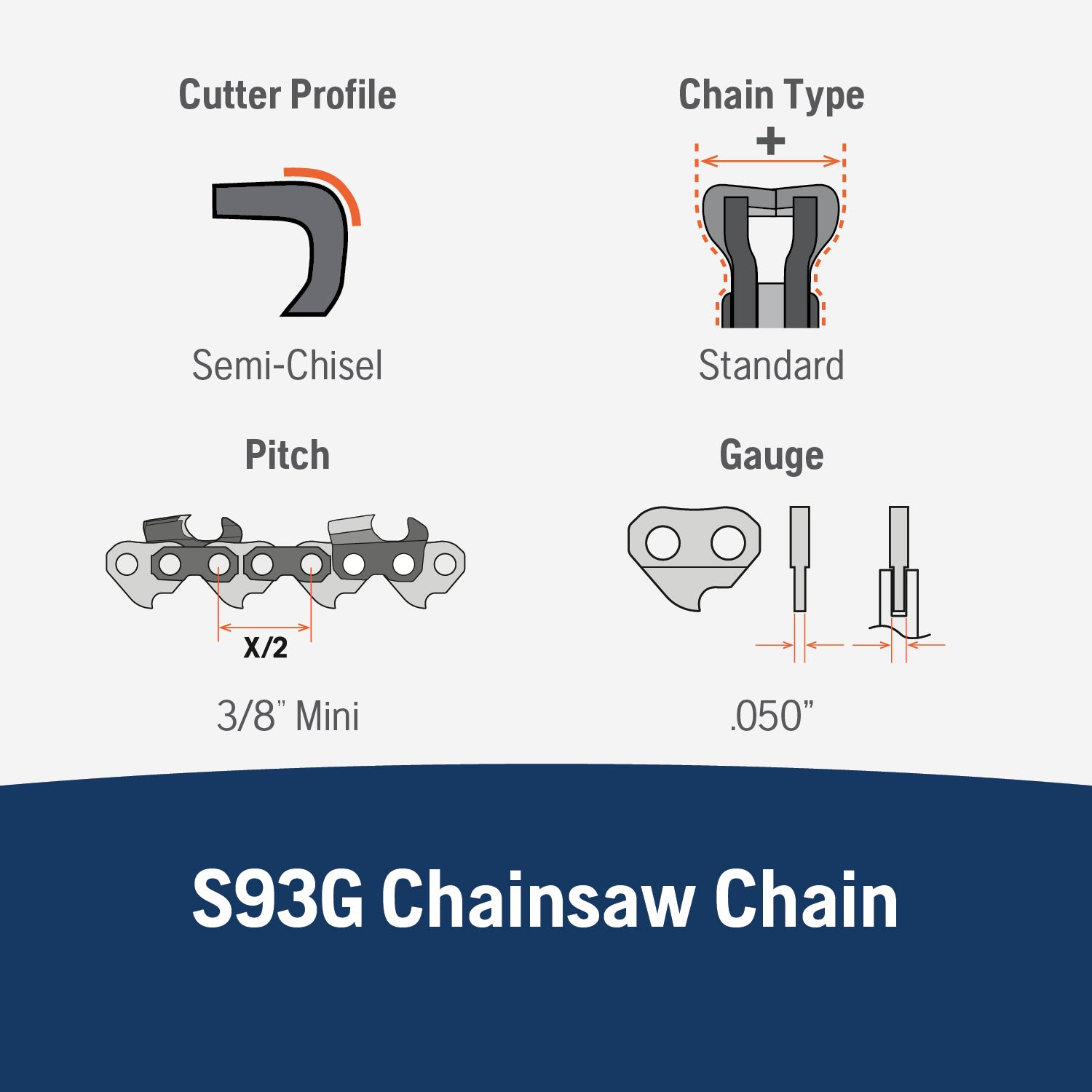 Husqvarna X-Cut S93G 16 Inch Chainsaw Chain Replacement, 3/8" Mini Pitch, .050" Gauge, and 56 Drive Links