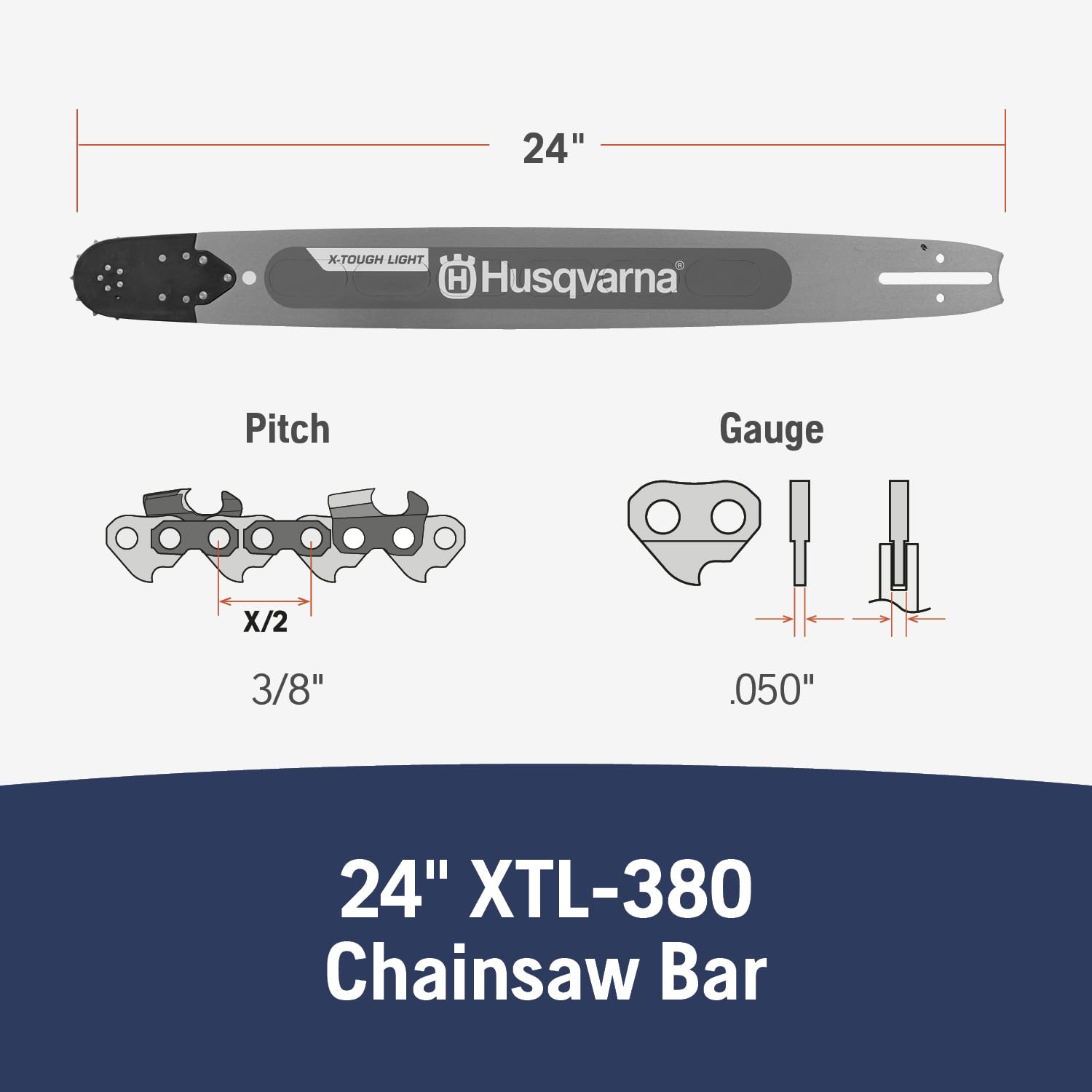 Husqvarna X-Tough Light 24 inch Chainsaw Bar, 3/8" pitch, 050" gauge and 84 drive links