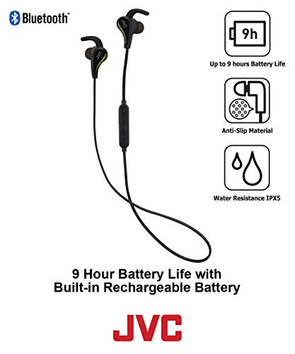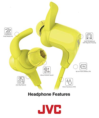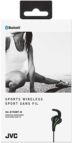 JVC Black and Yellow Wireless Water Resistant Pivot Motion Sport Headphone with Locking Ear Fit HA-ET50BTB