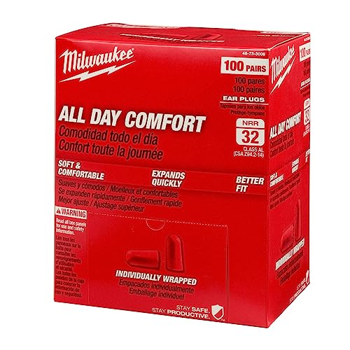 Milwaukee All Day Comfort Ear Plugs - Individually Wrapped (Box of 100 Pair)