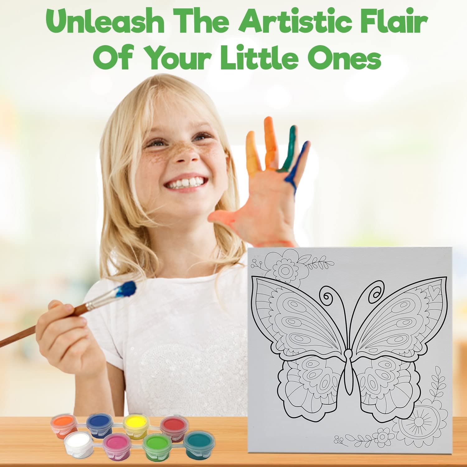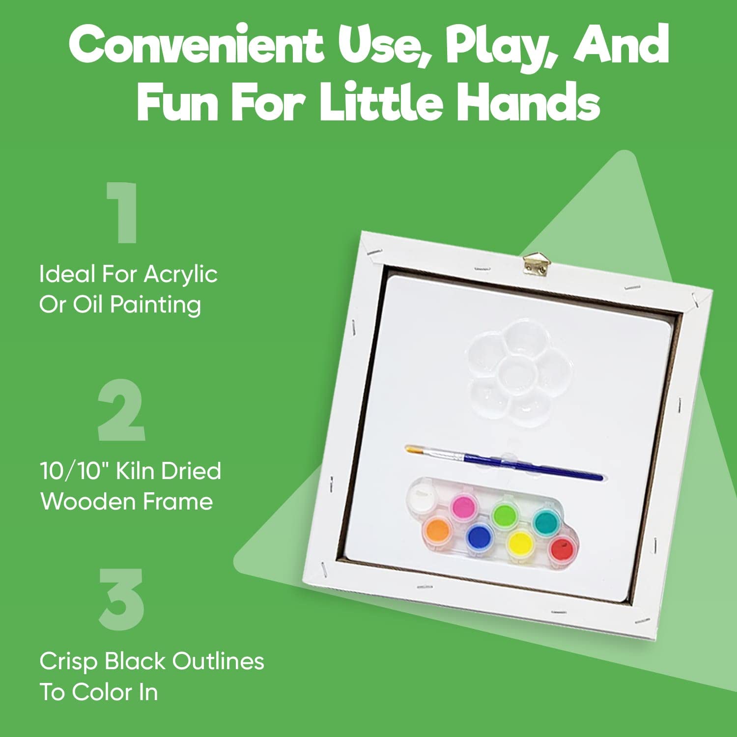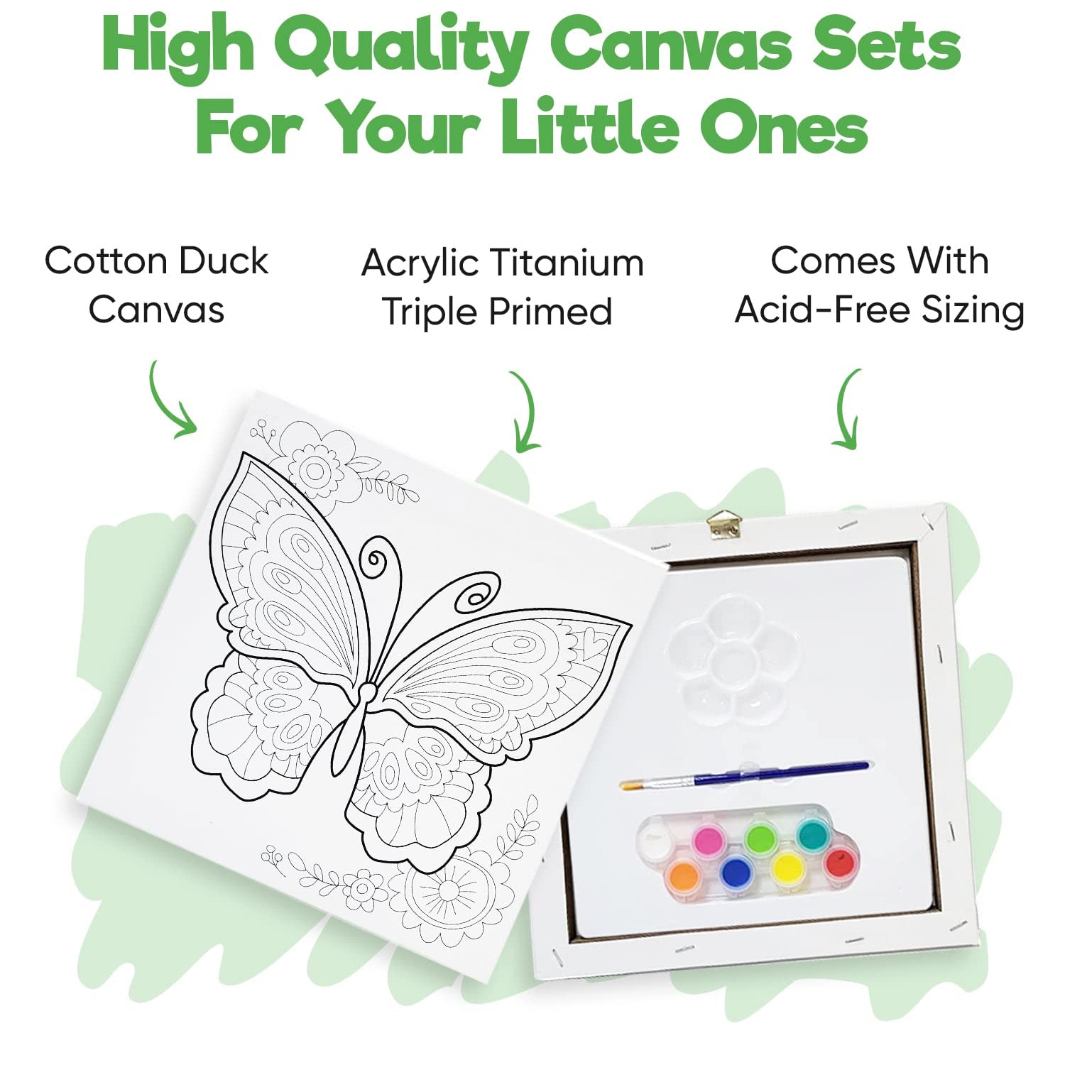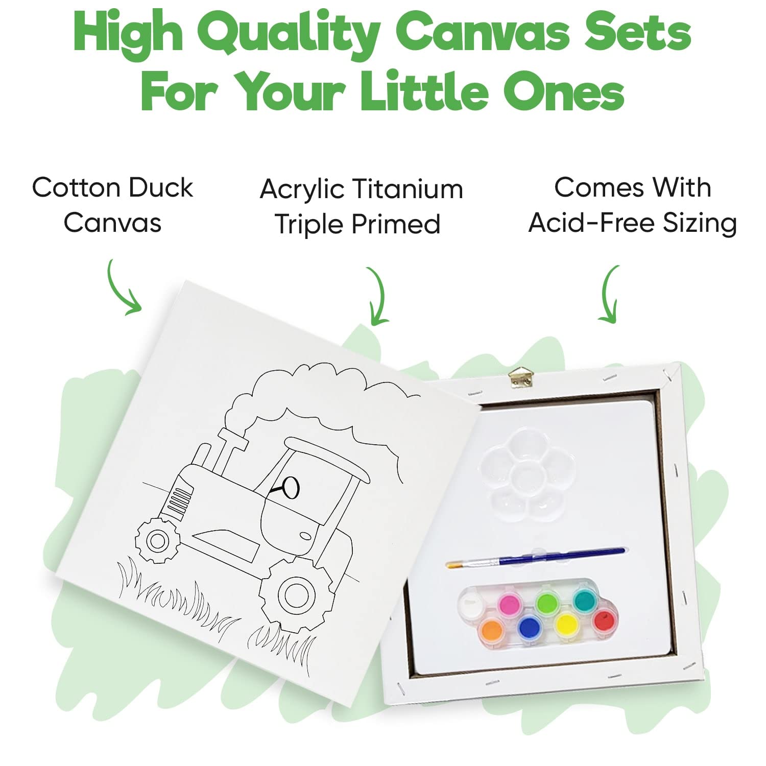 Misco Toys Canvas Paint Party Kits, 11 Piece Art kit Pre-Drawn Outline Canvas for Paint and Sip 8 Colors and Brush Included, Great Gift for Kids 4+ and Adults Too!