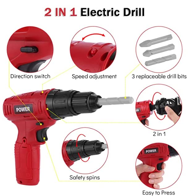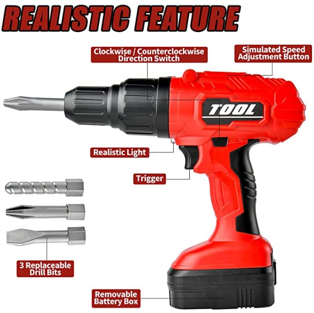 - COMPATIBLE WITH PLAY TOOLS- This realistic electric toy drill is compatible with most of the kids toy construction tools set