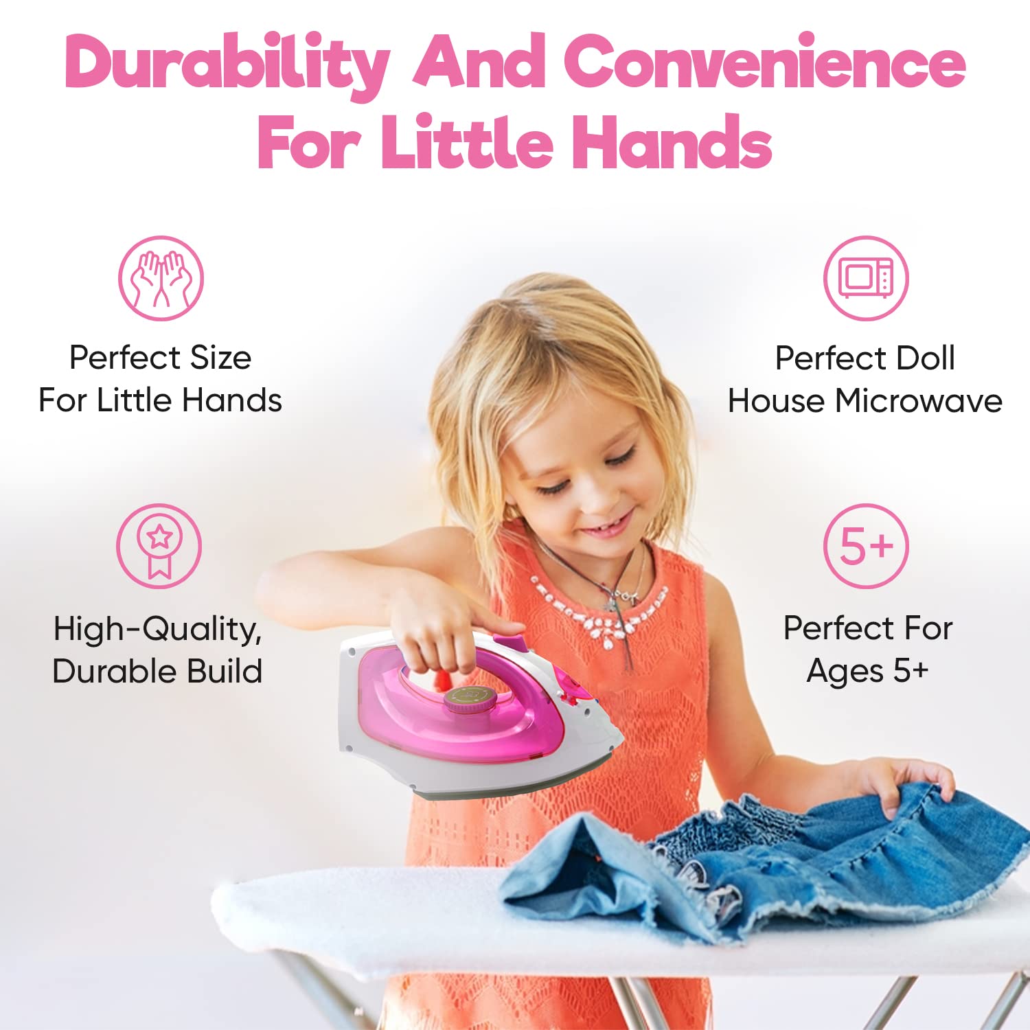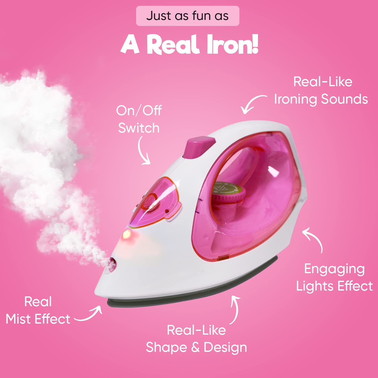 Misco Toys Kids Kitchen Appliances, Children Kitchen Pretend Play Laundry Iron Appliance Set for Toddlers, Real Lights and Vapor/steam Function, simulations Sound, Safe and Fun for All Kids.(Pink)