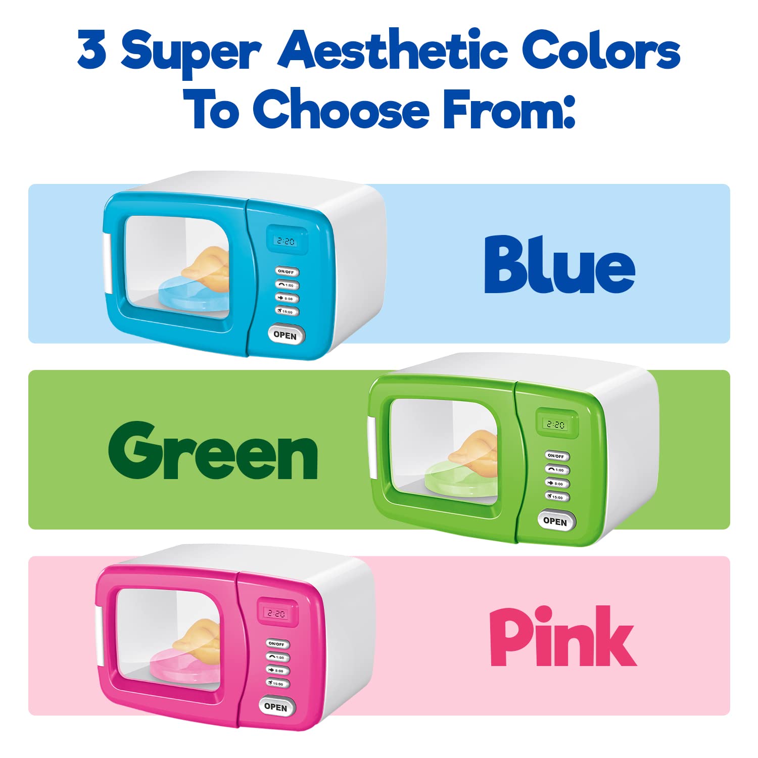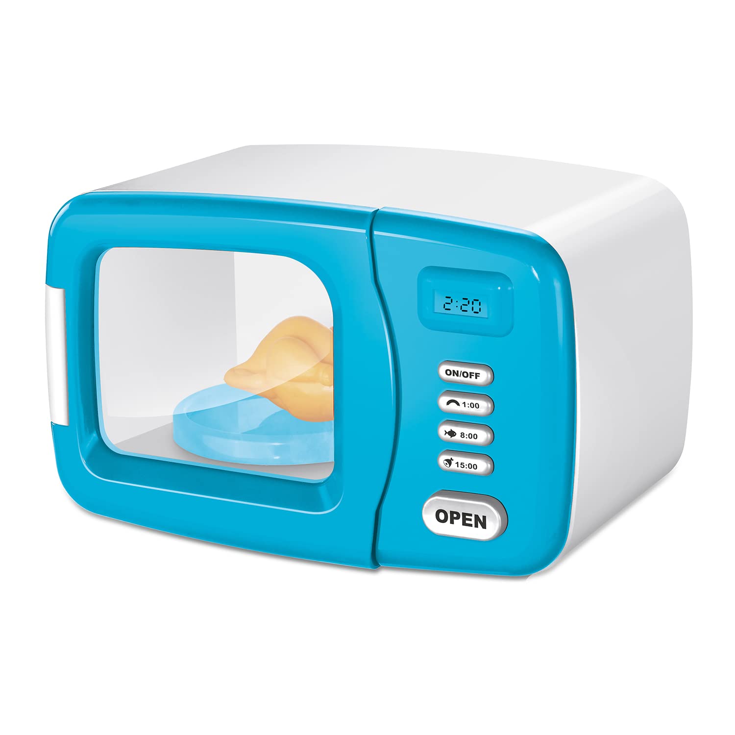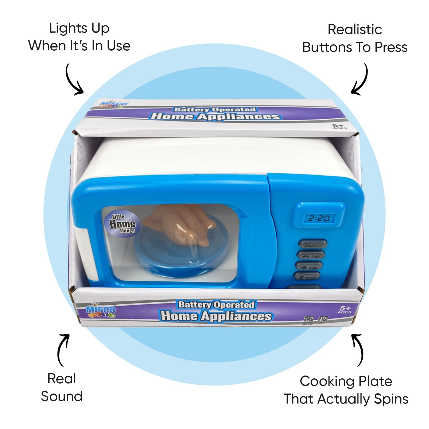 Misco Toys Kids Microwave Kitchen Appliances, Childrens Microwave Oven Pretend Play Appliance Set for Toddlers, Cookware Toy Set, Real Function Lights and Sounds, Ages 3+ (Blue)