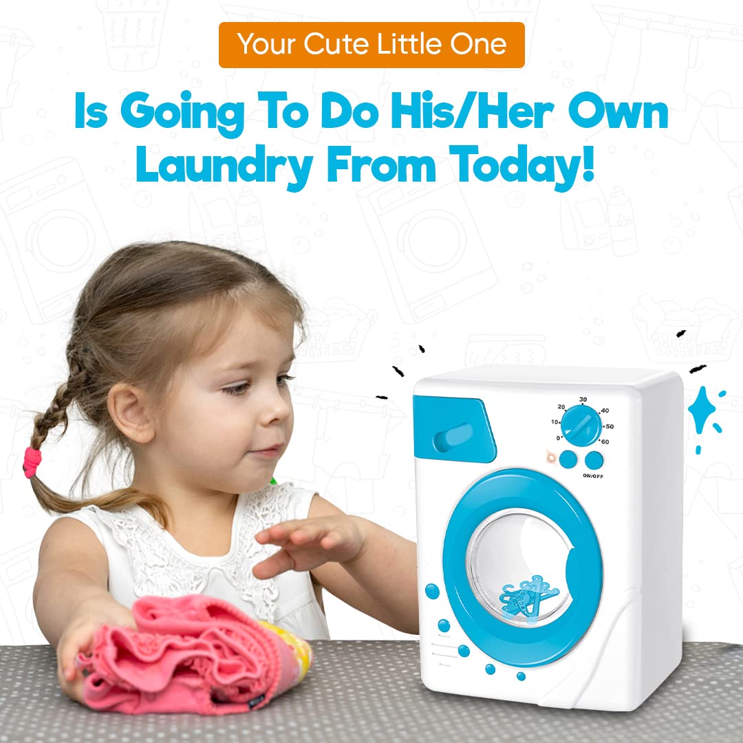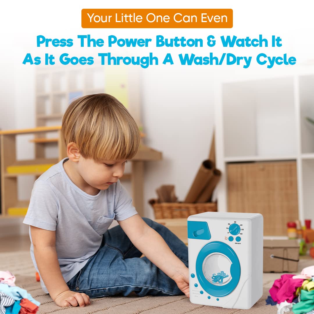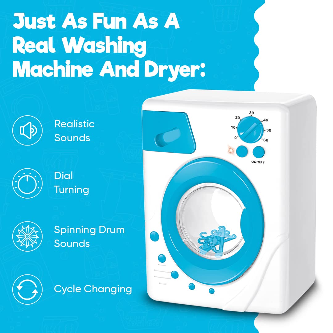 Misco Toys Kids Pretend Play Washing Machine Toy playset, Children Toy wash Machine Appliance Set for Toddlers, Real Life Lights and Sounds, Great Gift Ages 3+ (Blue)