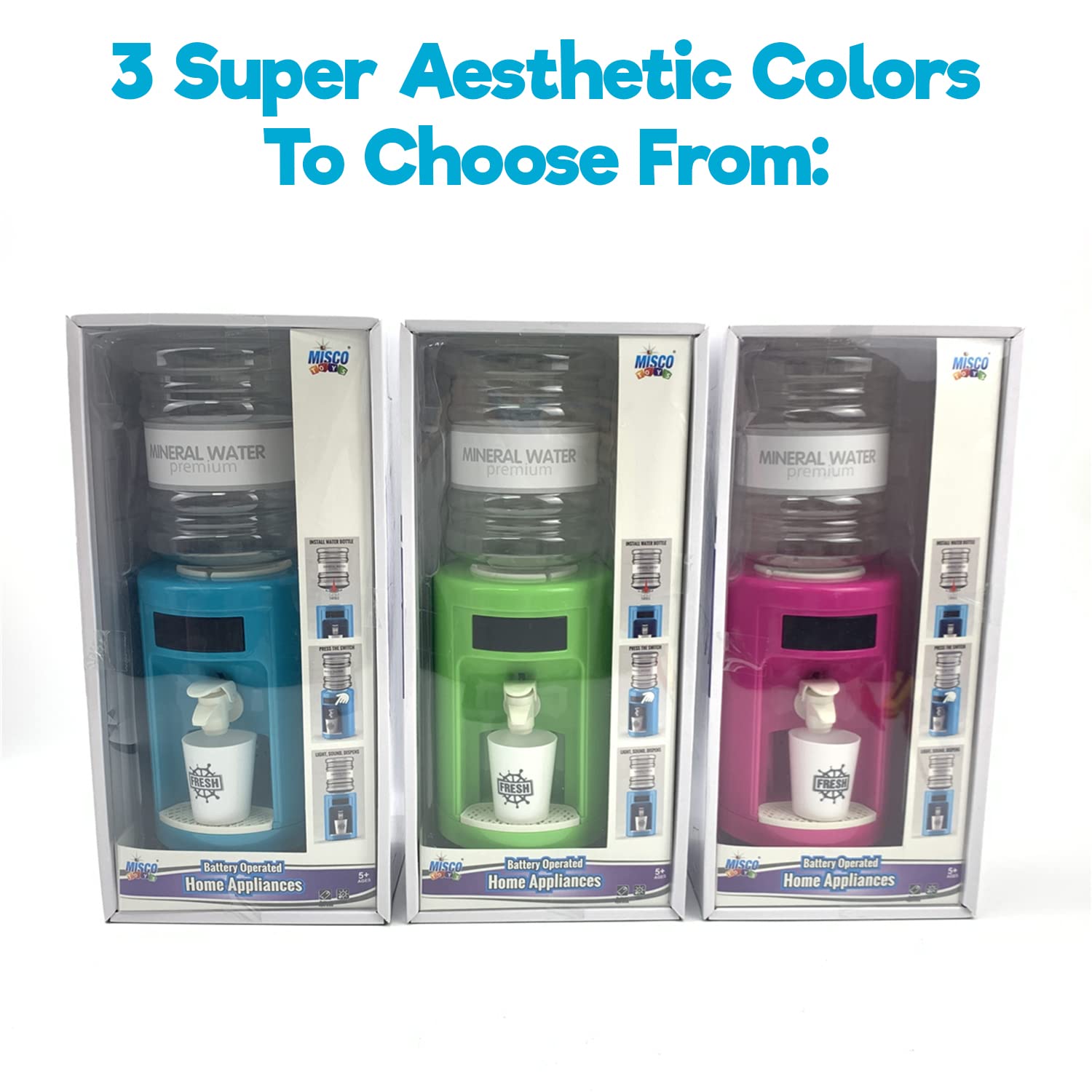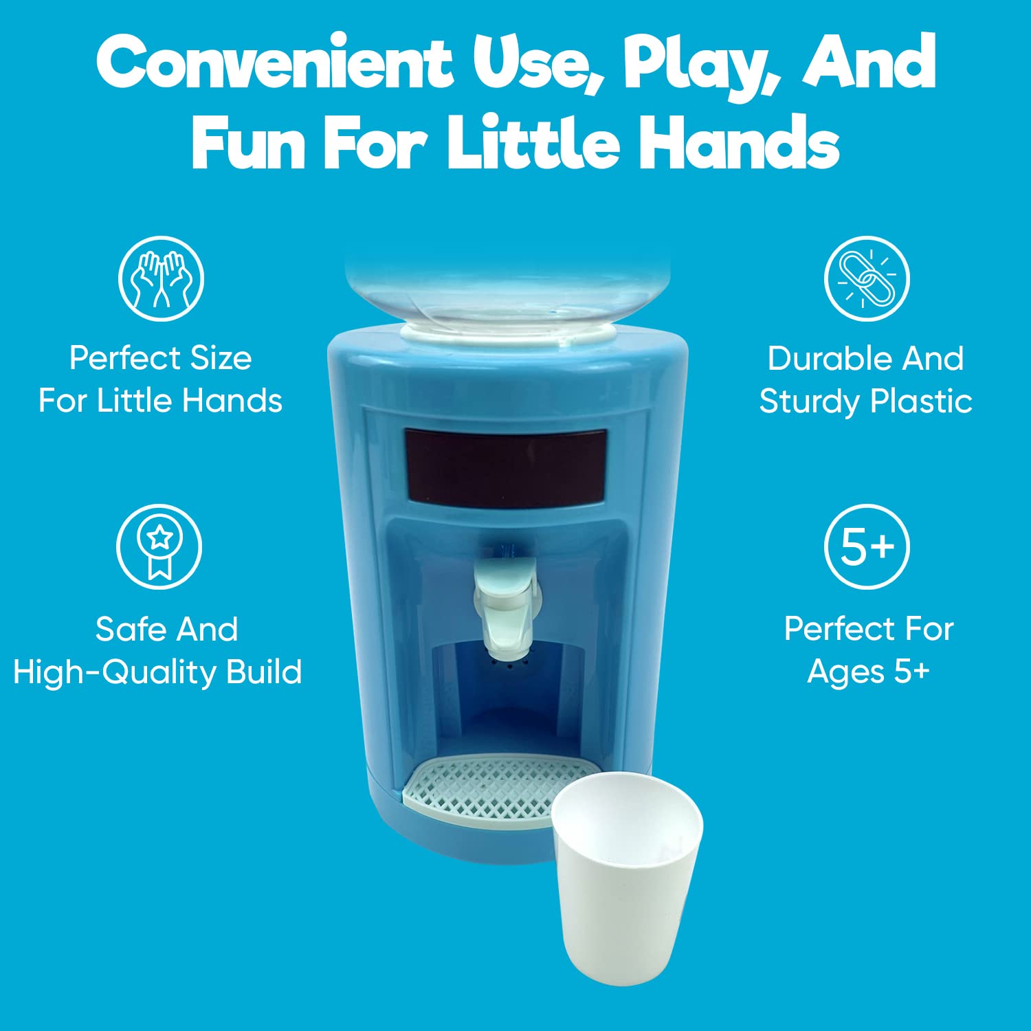 Misco Toys Kids Pretend Play Water Cooler Toy playset Kitchen Appliances, Childrens Pretend Play Action-Fun Appliance Set for Toddlers, Realistic use and Cups, Ages 3+ (Blue) (MT1400)