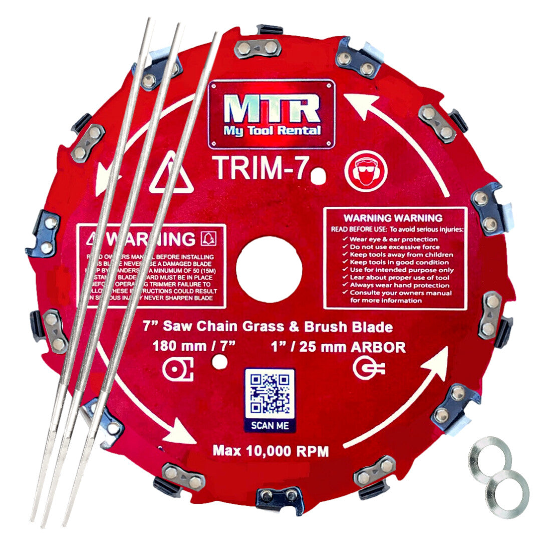MTR 7” Saw Chain Tooth Brush Cutter Blade Kit Includes 3 Files 2 Washers 14 Tooth Circular Blade Weed Eater Cutter Trimmer 10,000RPM Steel Grass Brush Cutter Blade