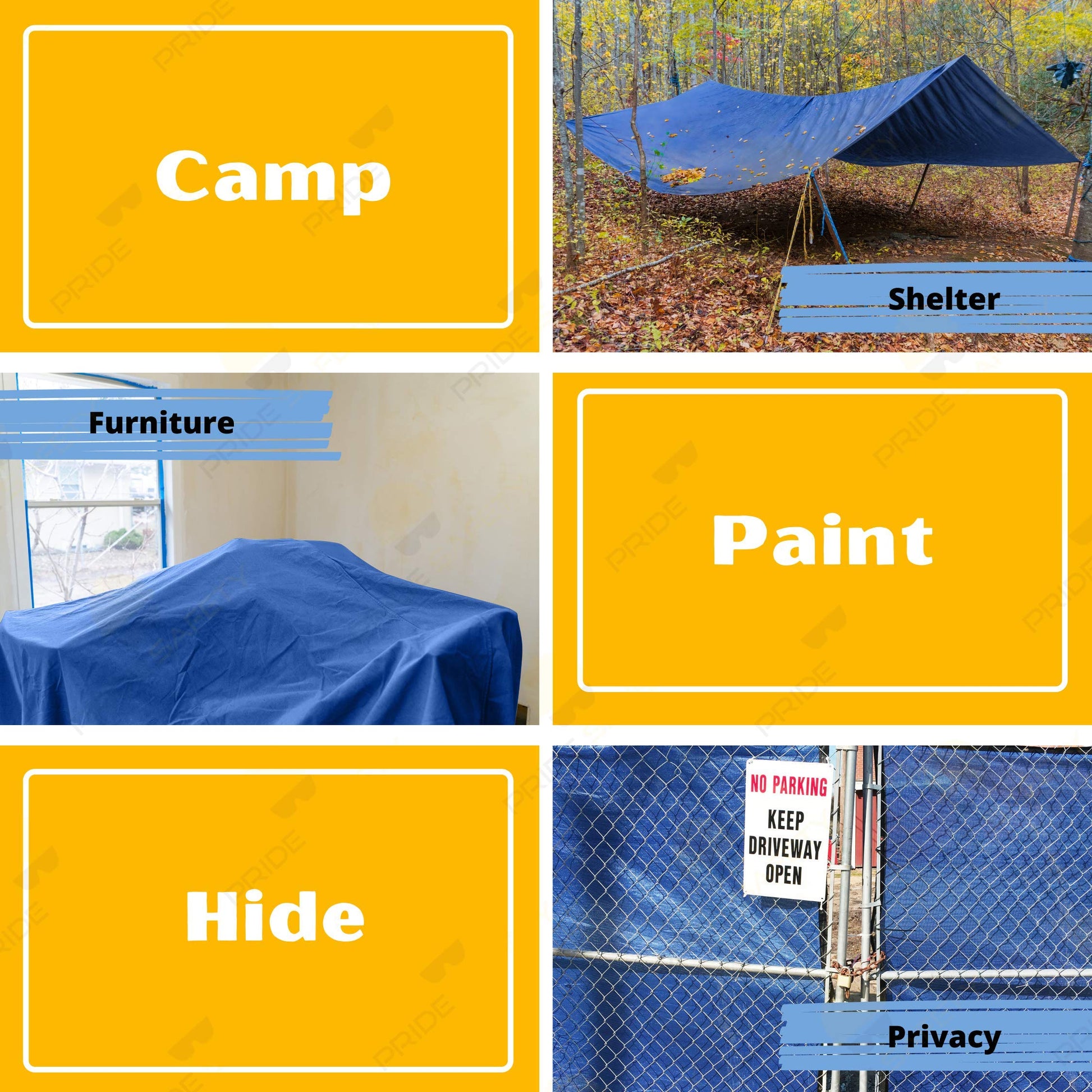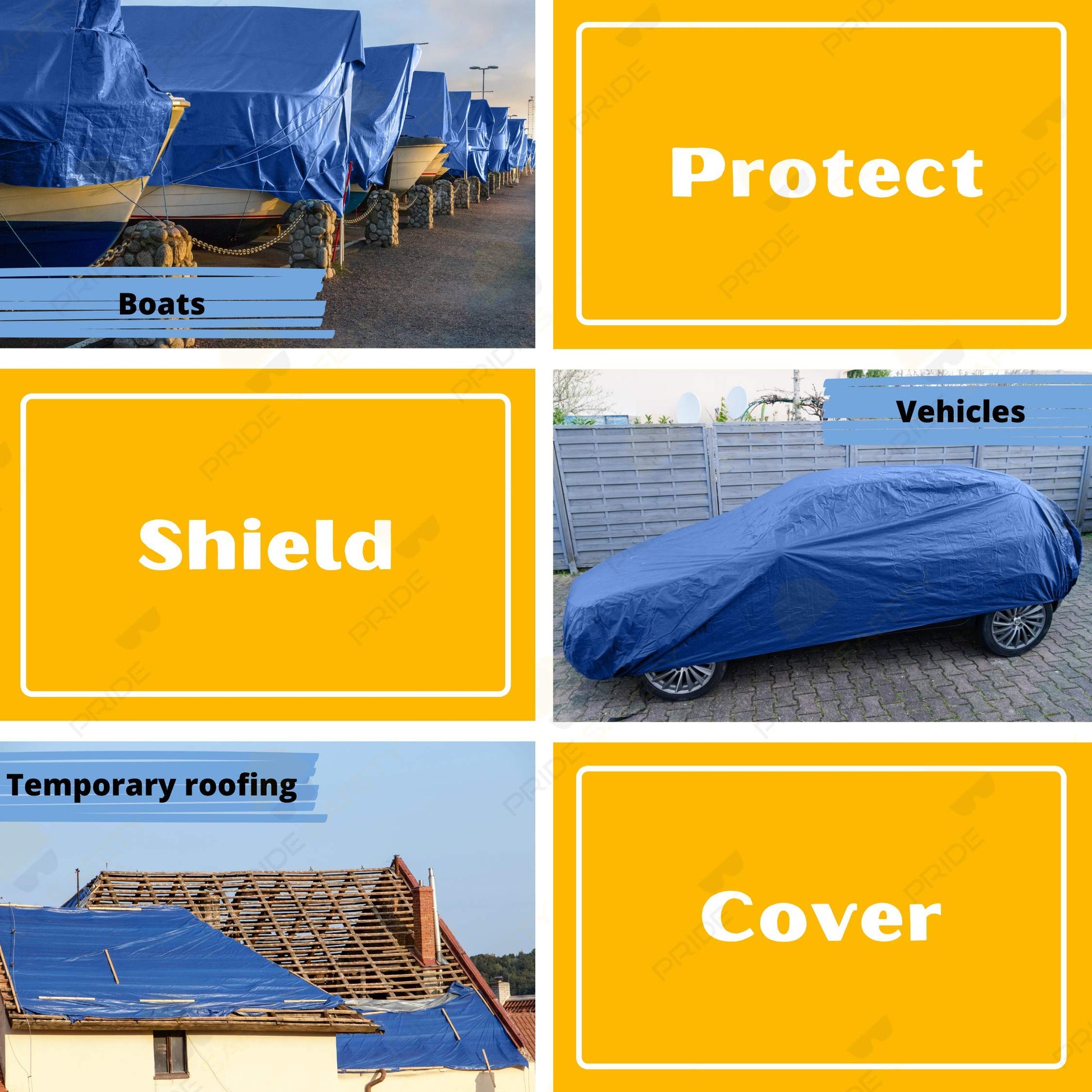 - PRACTICAL SOLUTION: Keep your boat, car, or pool safe and covered using the heavy-duty blue tarp by P-Line. Easy to use, practical, and versatile, this outdoor tarp is a great solution to keep shelter motor-vehicles from dust, rain, and powerful sunlight.