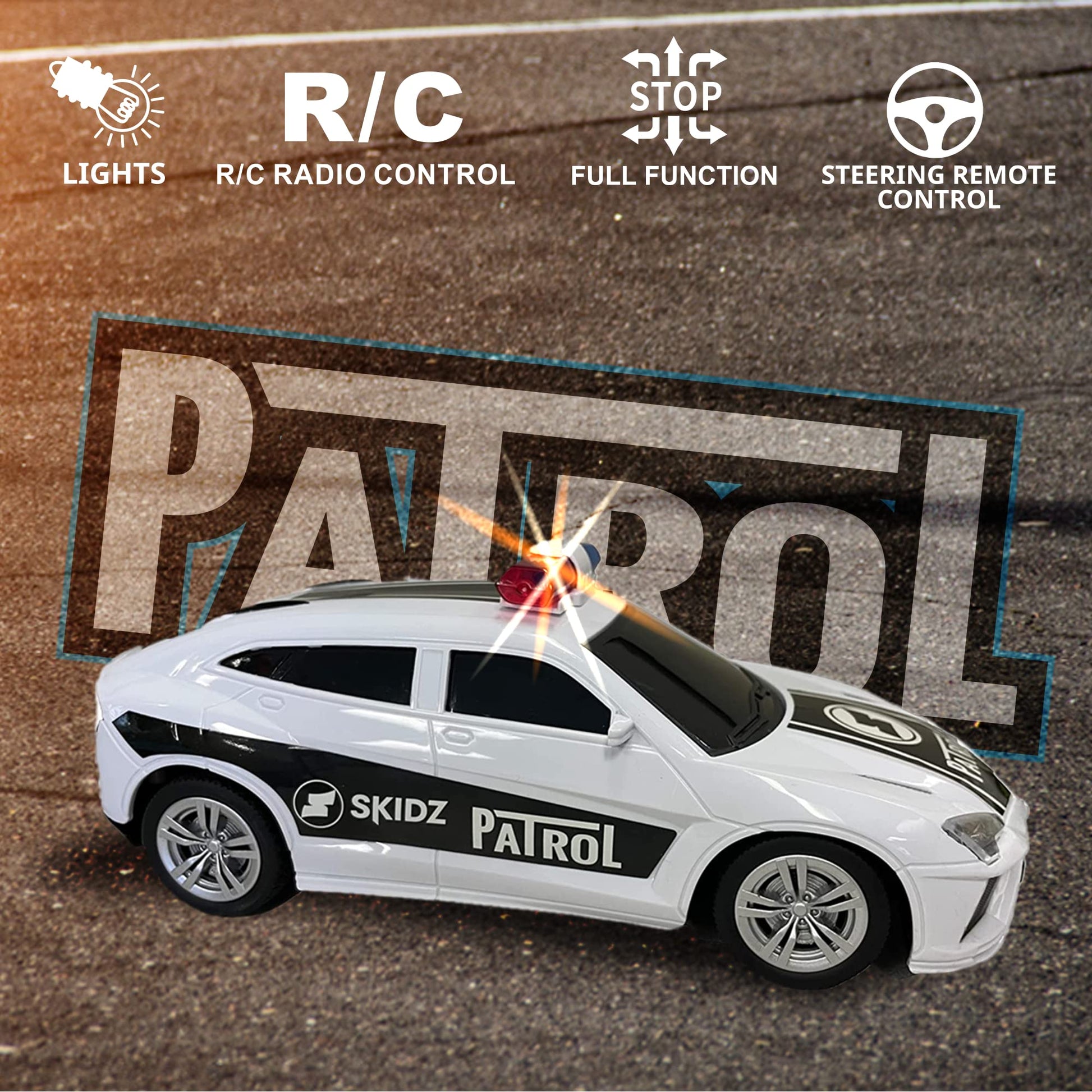Skidz RC Kids Remote Control Police Car for Kids, RC Patrol Toy Car with Lights and Sirens for Boys; High Speed Remote Control cop car Racer, Police Car Toy Gift for Toddlers 3+ (Black)
