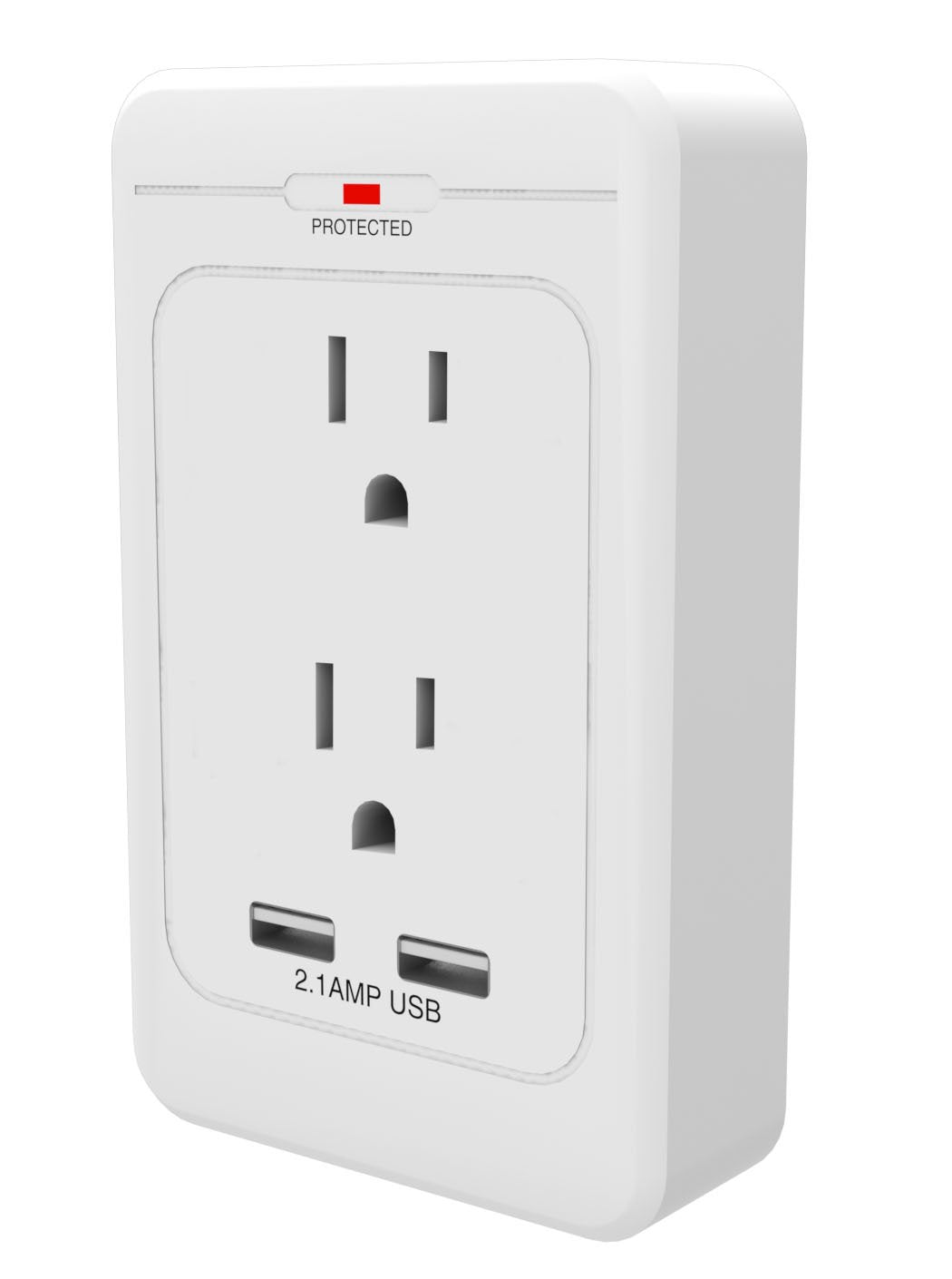 - Adds 2 USB charging ports (2.1 amps shared) to standard grounded wall outlet without reducing the number of available AC outlets